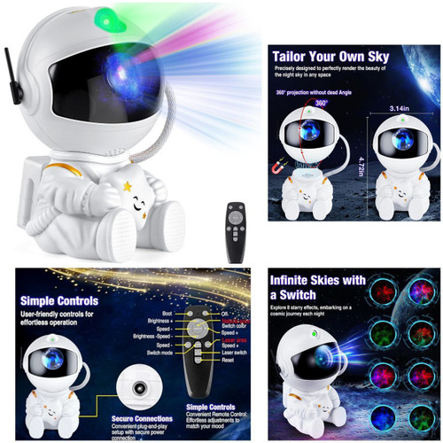 چراغ خواب فضانورد کهکشانی نشسته با ریموت | نور ملایم و طراحی خاص اتاق خواب