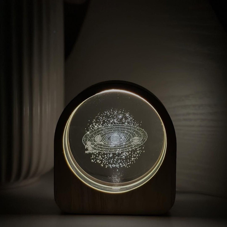 گوی کریستالی قاب چوبی هلالی | دکوری خاص با نور ملایم و طرحهای متنوع