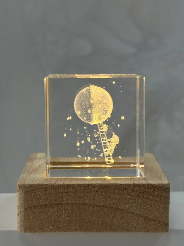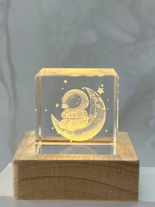 گوی کریستالی مربع با طراحی شفاف و طرحهای لیزری متنوع، مناسب دکور و هدیهای خاص. امکان انتخاب طرح دلخواه