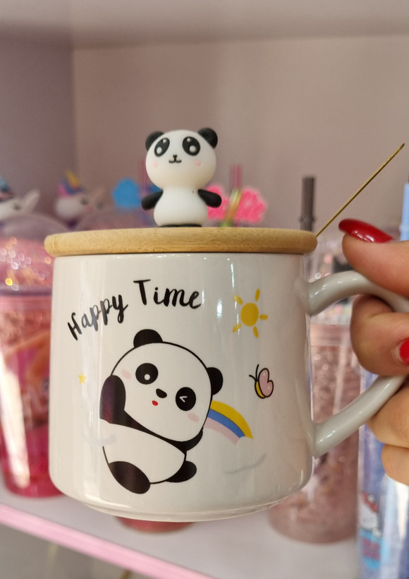 ماگ درب دار پاندا،قاشق دار،درب بامبو،وارداتی